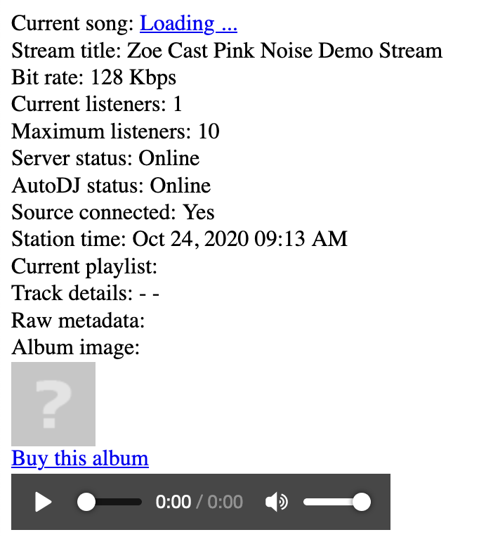 Current song: <a href="https://sh.fl-us.audio-stream.com:2199/tunein/demo123.pls" class="cc_streaminfo" data-type="song" data-username="demo123">Loading ...</a><br />