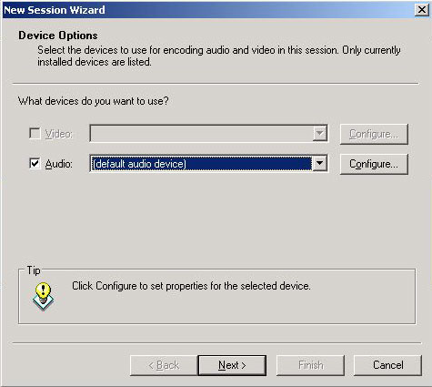 STEP 2 - Select Video, Audio or both, depending on what you need to do. Select the appropriate devices listed for each category and click Next.